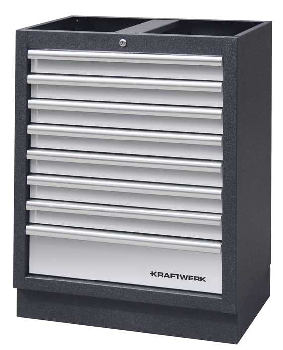 Mobilio z 8 szufladami na łożyskach kulkowych z systemu szaf warsztatowych Kraftwerk Mobilio.